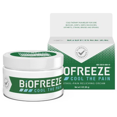 Biofreeze Menthol Pain Relieving Cream 3 OZ Jar For Pain Relief Associated With Sore Muscles Arthritis Simple Backaches Strains Bruises Sprains And Joint Pain Packaging May Vary. Roller ball applicator keeps. Biofreeze Menthol Pain Relieving Cream 3 OZ Jar For Pain Relief Associated With Sore Muscles Arthritis Simple Backaches Strains Bruises Sprains And Joint Pain Packaging May Vary.